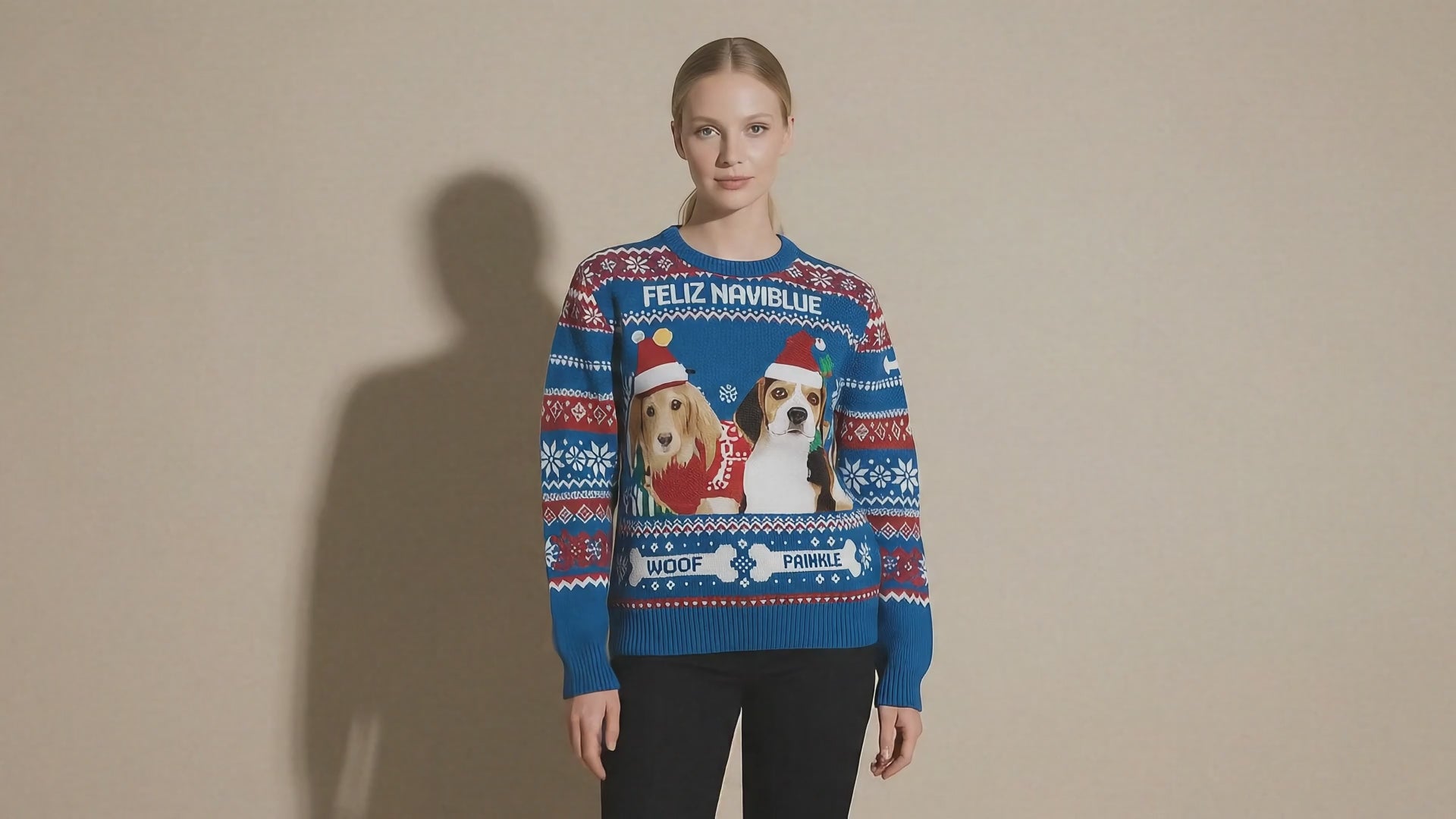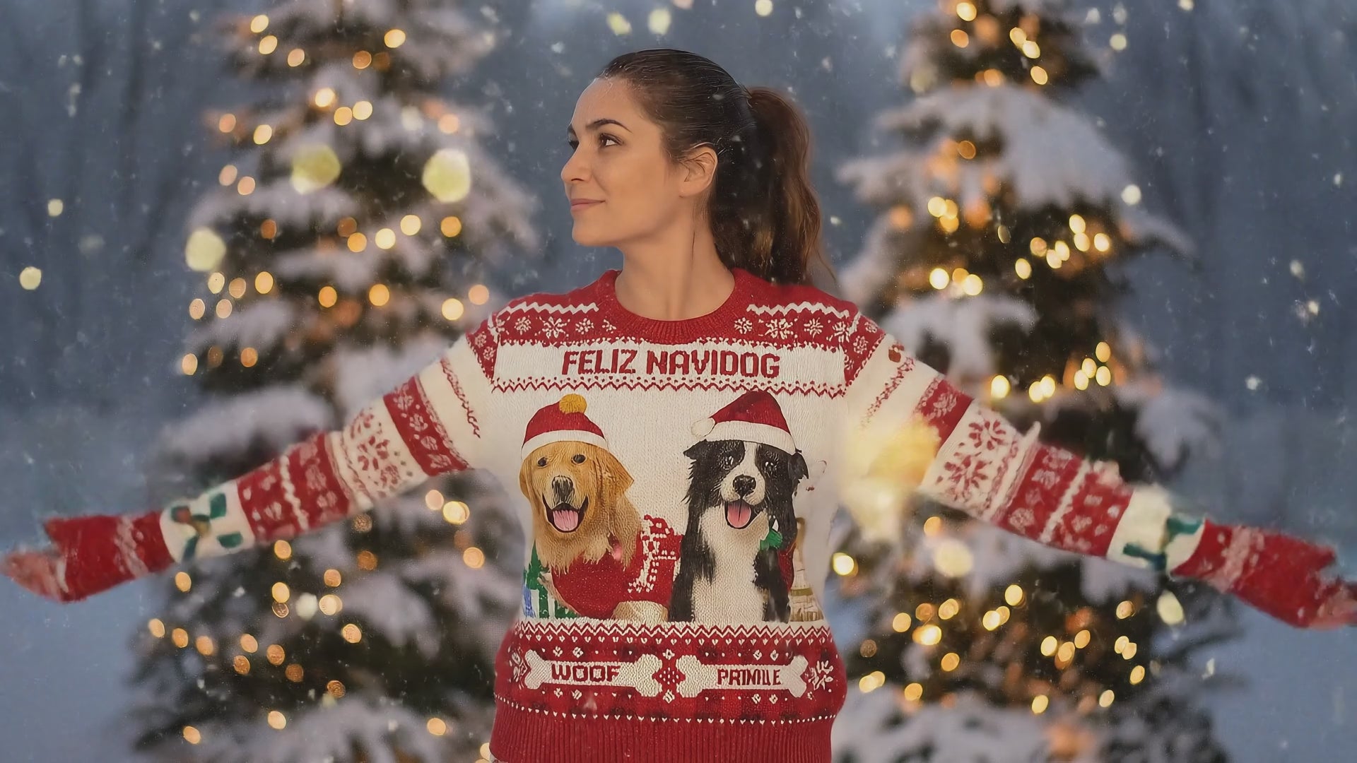 El diseño debe tener las fotos según necesites para tu producto y opcional un mensaje "Feliz Navidog" o algún nombre "Leo y Cloe"
